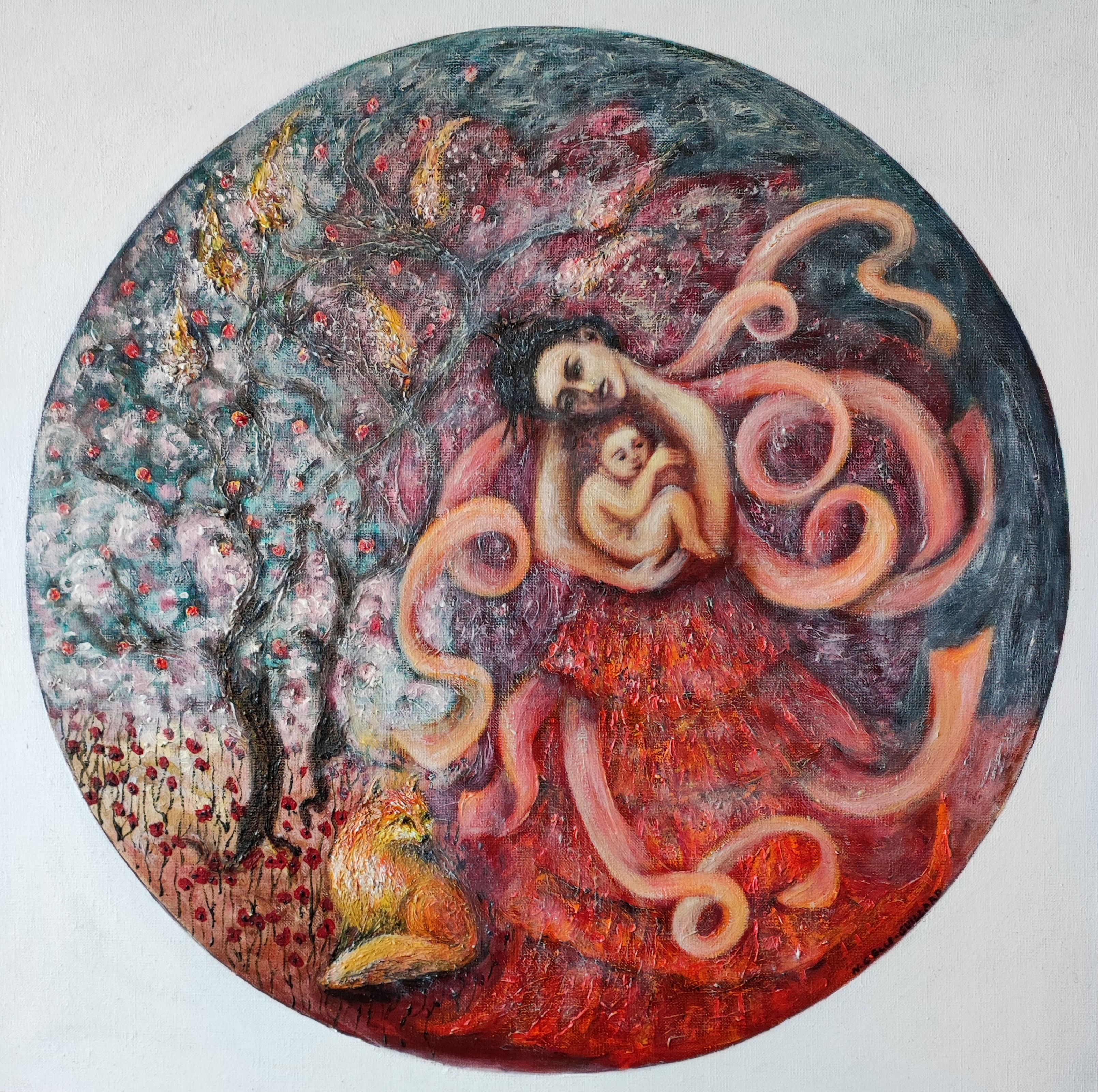 " Kitsune la femme au renard " Huile sur toile 65 x 54 cm.