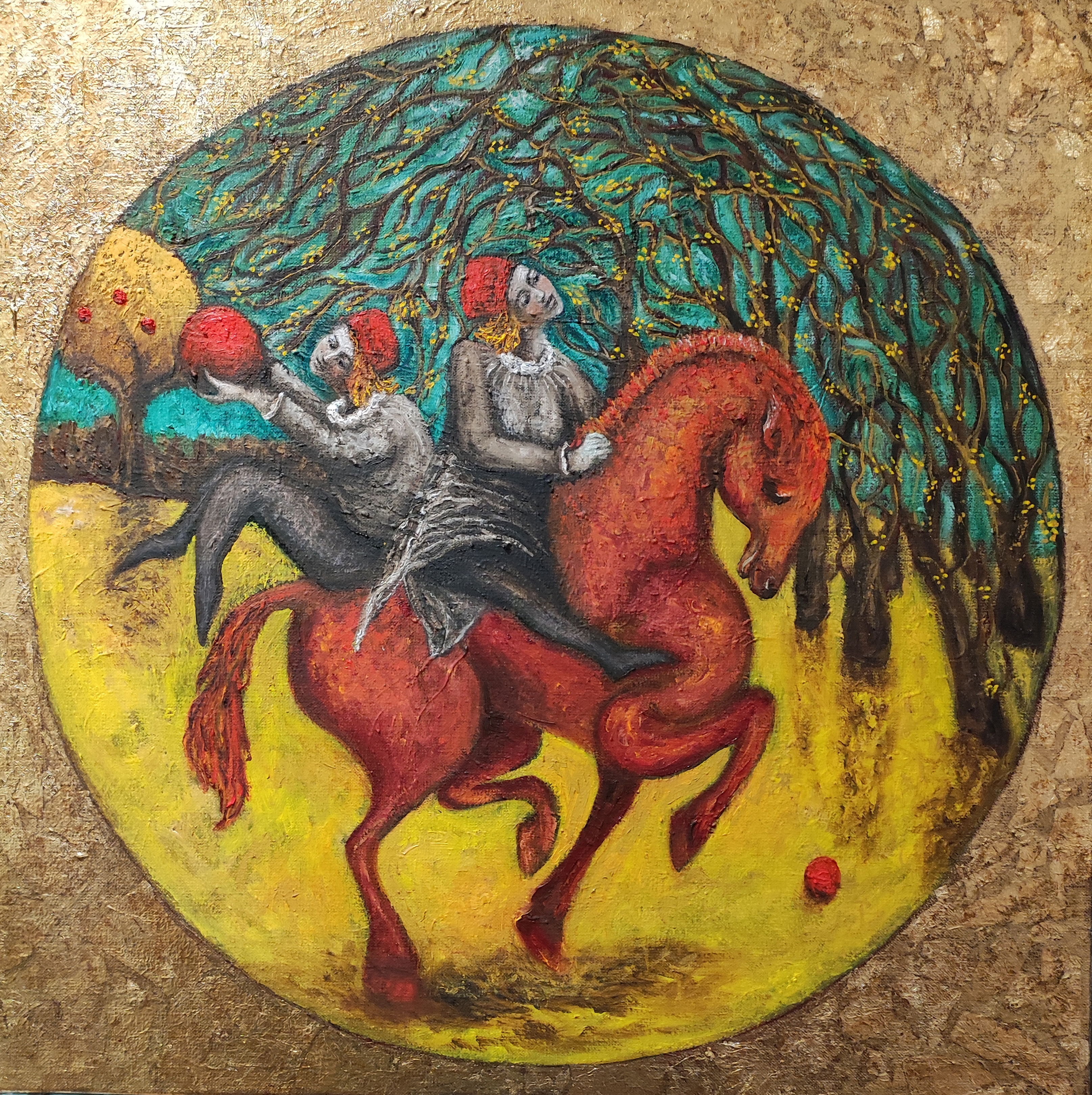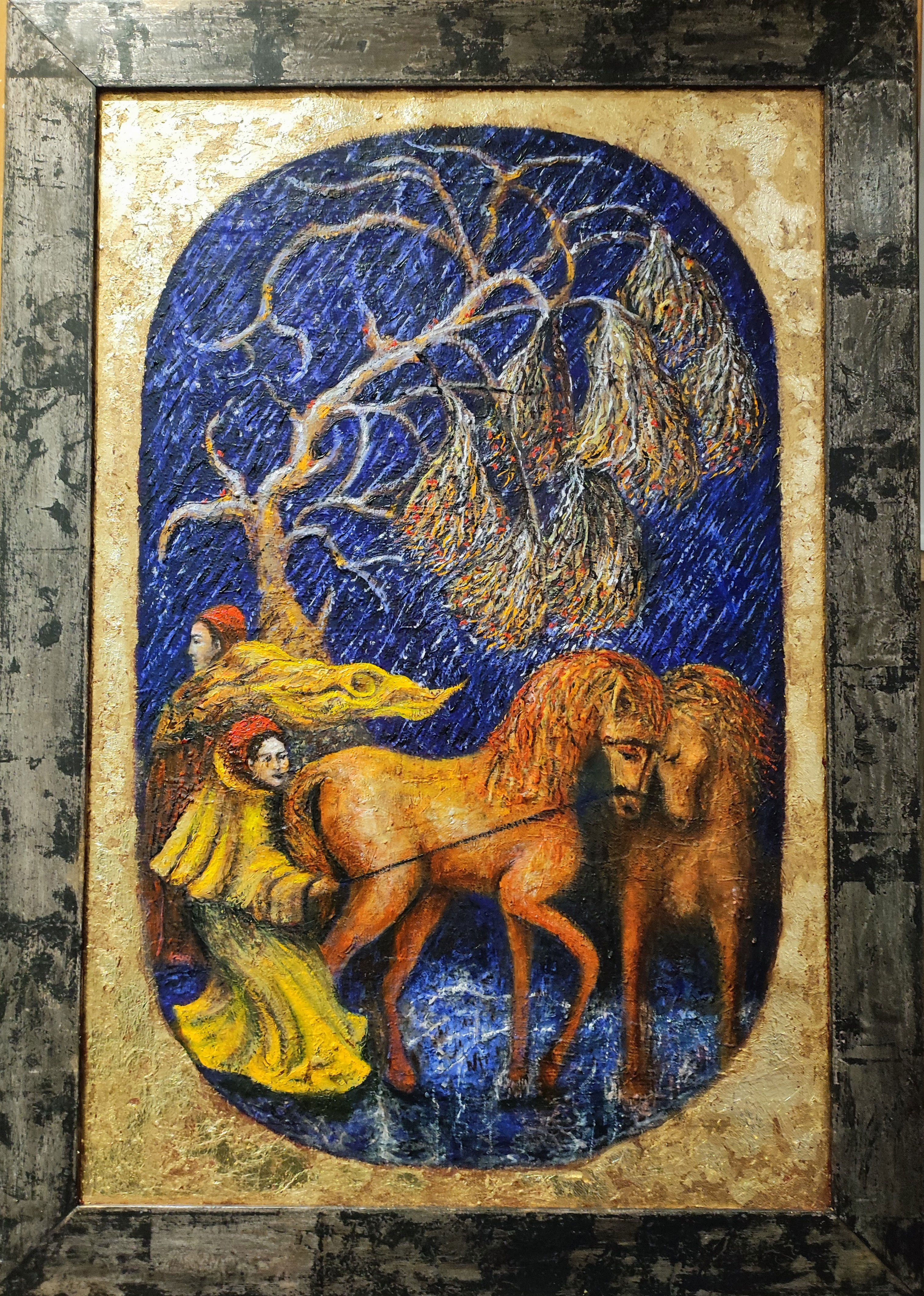 L'ÉCHAPPÉE huile sur toile et feuilles d'or