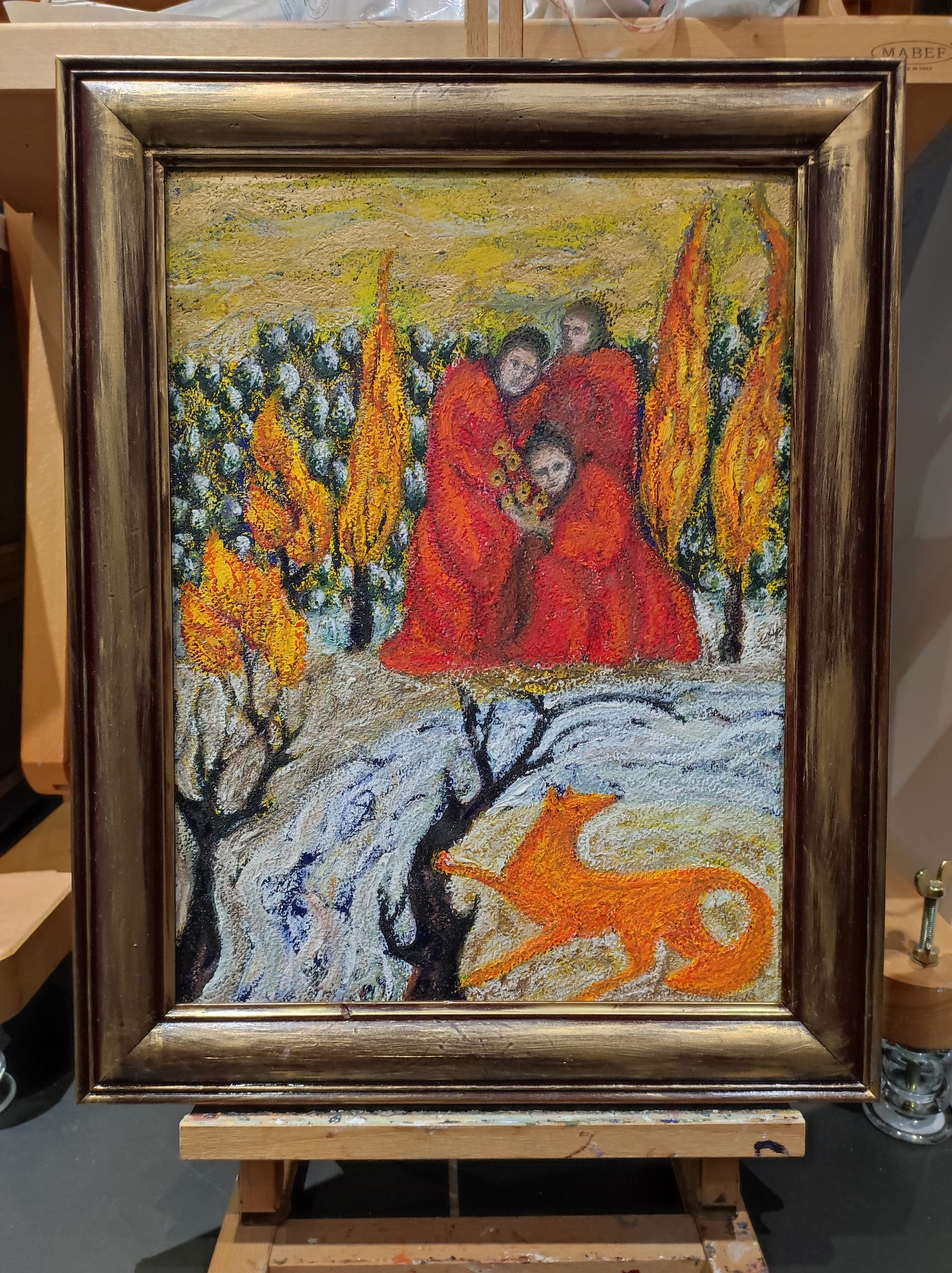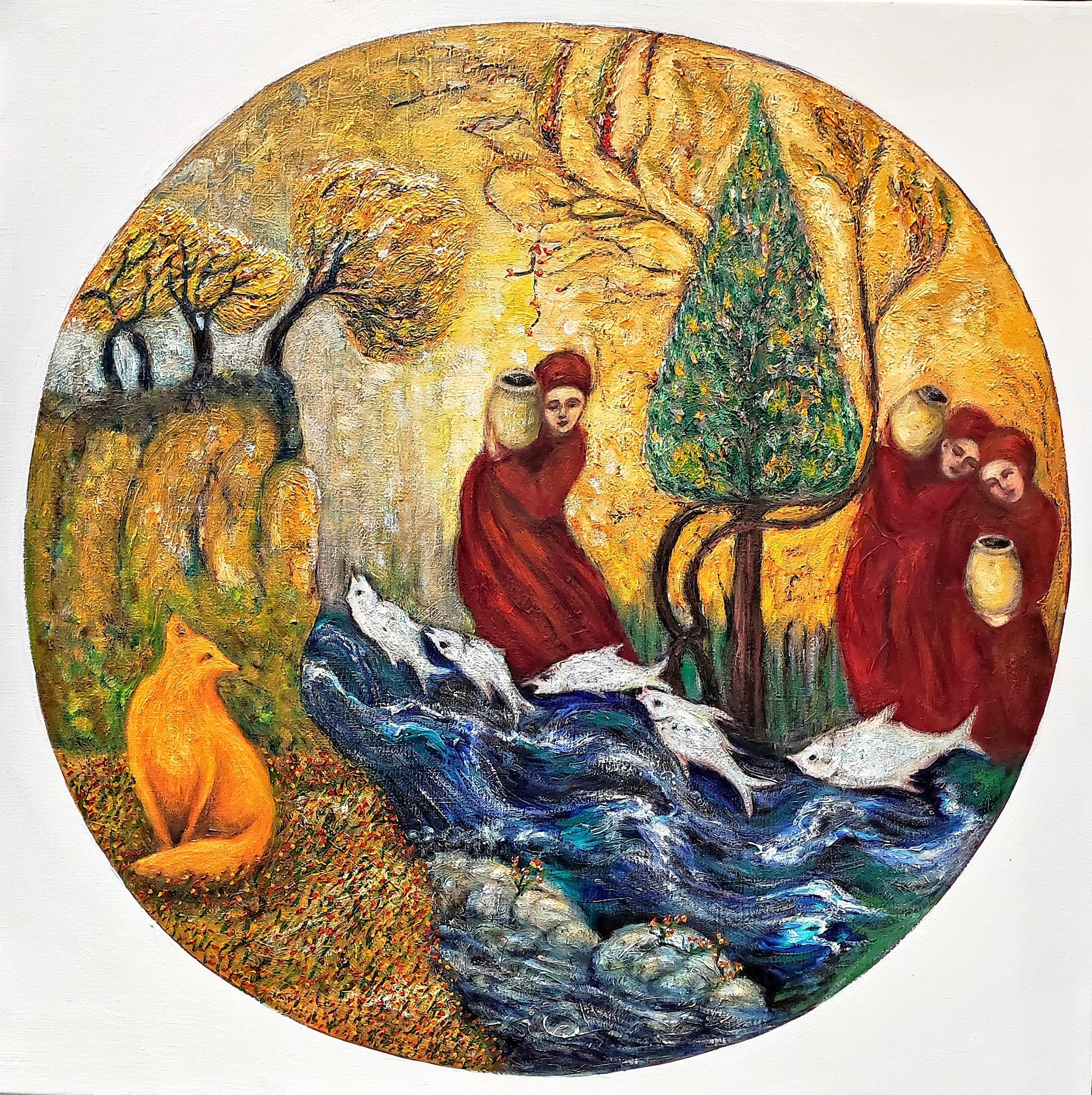 "Les fileuses III" Huile sur toile 60 x 60 cm Collection privée Audrey Janez